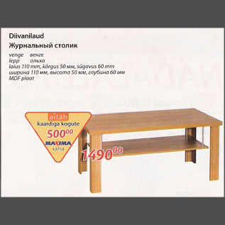 Toode diivanilaud oli müügil allahindlusega Maxima poes ajavahemikul 02.03.2010 kuni 08.03.2010.