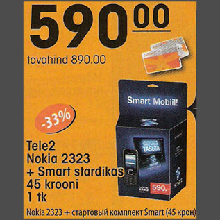 Kampaania periood: 12.04.2010 Tele2 Nokia 2323 + Smart stardikas 45 krooni1 tk