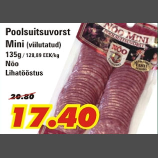 Kampaania periood: 02.04.2010 - 22.04.2010 Poolsuitsuvorst Miniviilutatud, 135g, Nõo Lihatööstus