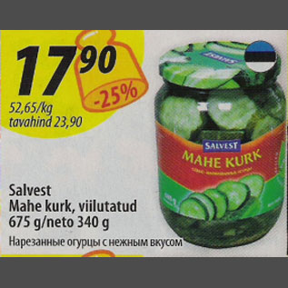 Kampaania periood: 10.06.2010 - 30.06.2010 Salvest Mahe kurk, viilutatud675g / neto 340g