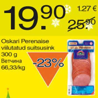 Kaup oskari perenaise viilutatud suitsusink oli müügil allahindlusega Säästumarketi poes ajavahemikul 15.12.2010 kuni 21.12.2010.