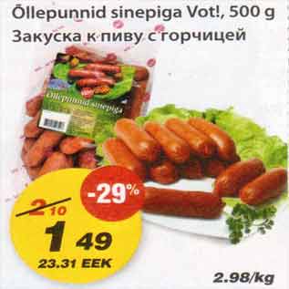 Kaup õllepunnid sinepiga vot! oli müügil allahindlusega Maxima poes ajavahemikul 21.06.2011 kuni 27.06.2011.