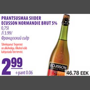 Kaup prantsusmaa siider ecusson normandide brut oli müügil allahindlusega Maksimarketi ja Konsumi poodides ajavahemikul 29.06.2011 kuni 12.07.2011.