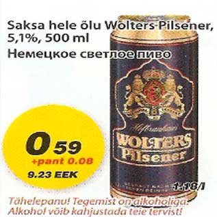 Kaup saksa hele õlu wolters pilsener oli müügil allahindlusega Maxima poes ajavahemikul 02.08.2011 kuni 08.08.2011.