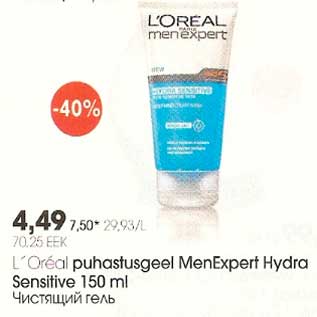 Toode l`oreal puhastusgeel menexpert hydra sensitiive oli müügil allahindlusega Selveri poes ajavahemikul 04.08.2011 kuni 07.09.2011.