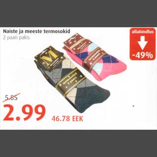 Toode naiste ja meeste termosokid oli müügil allahindlusega Comarketi poes ajavahemikul 03.11.2011 kuni 11.11.2011.