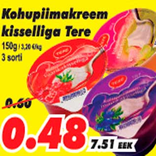 Kaup kohupiimakreem kisselliga tere oli müügil allahindlusega Grossi poes ajavahemikul 11.11.2011 kuni 01.12.2011.