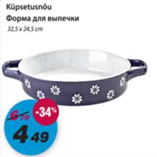 Kampaania periood: 31.01.2012 - 06.02.2012 Hind: 4.49€ Küpsetusnõu 32,5 x 24,5cm