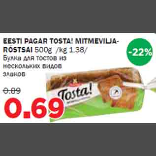 Kampaania periood: 15.02.2012 - 13.03.2012 Hind: 0.69€ EESTI PAGAR TOSTA! MITMEVILJARÖSTSAI 500g
