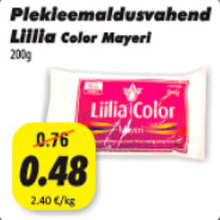 Kampaania periood: 02.03.2012 - 15.03.2012 Hind: 0.48€ Plekieemaldusvahend Liilia Color Mayeri, 200g