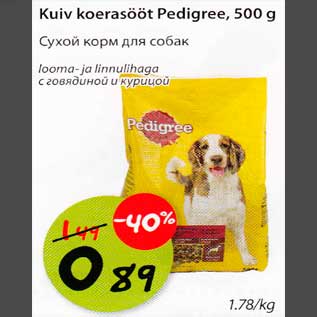 Kampaania periood: 09.03.2012 - 12.03.2012 Hind: 0.89€ Kuiv koerasööt Pedigree, 500g