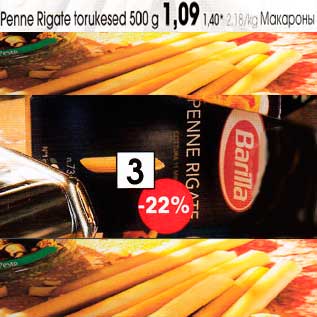 Kampaania periood: 29.03.2012 - 04.04.2012 Hind: 1.09€ Penne Rigate 500g