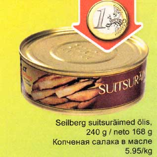 Kampaania periood: 14.05.2012 - 20.05.2012 Hind: 1.00€ Seilberg suitsuräimеd õlis, 240 g/neto 168 g