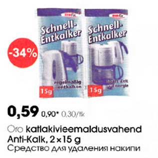 Toode oro katlakivieemaldusvahend anti-kalk, 2 x 15g oli müügil allahindlusega Selveri poes ajavahemikul 31.05.2012 kuni 13.06.2012 hinnaga 0.59 eurot.