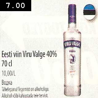 Kampaania periood: 28.06.2012 - 11.07.2012 Hind: 7.00€ Eesti viin Viru ValgeKriisis.ee ei vastuta kommentaaride sisu eest. Autori arvamus võib kriisis.ee arvamusest erineda. Võimaluse korral jälgides kommentaare, kriisis.ee jätab endale õiguse kustutada neid põhjusi seletamata. Kui Teie olete sobimatu kommentaari märganud, palume meile sellest teatada.