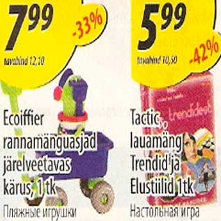 Kampaania periood: 07.07.2012 Hind: 7.99€ Ecoiffier rannamänguasjad järelveetavas kärus Tactic lauamäng Trendid ja Elustiilid
