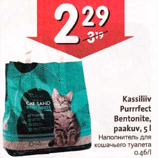 Toode kassiliiv purrrfect bentonite, paakuv,5 i oli müügil allahindlusega Hüper Rimi ja Rimi poodides ajavahemikul 22.08.2012 kuni 28.08.2012 hinnaga 2.29 eurot.