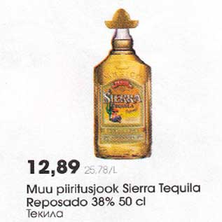Kaup muu piiritusjook sierra tequila reposado 38% 50 cl oli müügil allahindlusega Selveri poes ajavahemikul 06.09.2012 kuni 03.10.2012 hinnaga 12.89 eurot.