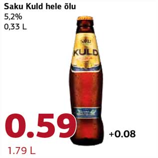 Kaup saku kuld hele õlu 5,2% 0,33 l oli müügil allahindlusega Comarketi poes ajavahemikul 20.09.2012 kuni 28.09.2012 hinnaga 0.59 eurot.