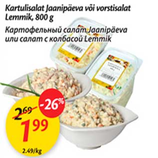 Kampaania periood: 18.09.2012 - 24.09.2012 Hind: 1.99€ Kaartulisalat Jaanipäeva või vorstisalat Lemmik, 800 g