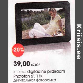 Toode intеnsо digitaalne pildiraam photofan 6", l tk oli müügil allahindlusega Selveri poes ajavahemikul 15.11.2012 kuni 05.12.2012 hinnaga 39.00 eurot.