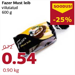 Kampaania periood: 06.12.2012 - 14.12.2012 Hind: 0.54€ Fazer Must leib viilutatud 600 g
