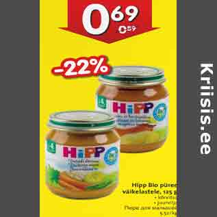 Kampaania periood: 02.01.2013 - 15.01.2013 Hind: 0.69€ Hipp Bio püree väikelastele, 125 g