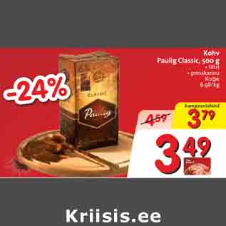 Kampaania periood: 02.01.2013 - 15.01.2013 Hind: 3.49€ Kohv Paulig Classic, 500 g