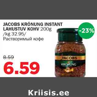 Kampaania periood: 16.01.2013 - 28.01.2013 Hind: 6.59€ JACOBS KRÖNUNG INSTANT LAHUSTUV KOHV 200g