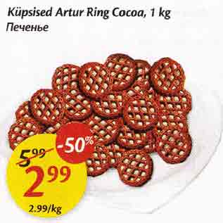 Kampaania periood: 12.03.2013 - 18.03.2013 Hind: 2.99€ Küpsised Artur Ring Cocoa, 1 kg