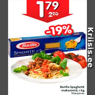 Kampaania periood: 27.03.2013 - 02.04.2013 Hind: 1.79€ Barilla Spaghetti makaronid, 1 kg