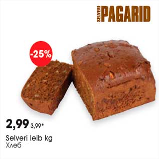 Kampaania periood: 11.04.2013 - 01.05.2013 Hind: 2.99€ Selveri leib kg