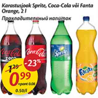 Kampaania periood: 07.05.2013 - 13.05.2013 Hind: 0.99€ Karastusjook Sprite,Coca-Cola või Fanta Orange