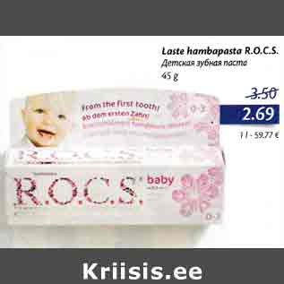 Kampaania periood: 09.05.2013 - 15.05.2013 Hind: 2.69€ Laste hambapasta R.O.C.S.