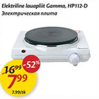 Kampaania periood: 14.05.2013 - 20.05.2013 Hind: 7.99€ Elektriline lauapliit Gamma, HP112-D
