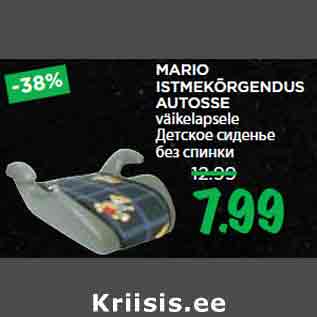 Toode mario istmekõrgendus autosse väikelapsele oli müügil allahindlusega Maksimarketi poes ajavahemikul 29.05.2013 kuni 10.06.2013 hinnaga 7.99 eurot.