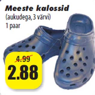 Kampaania periood: 31.05.2013 - 13.06.2013 Hind: 2.88€ Meeste kalossid (aukudega, 3 värvi) 1 paar