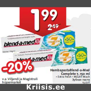Kampaania periood: 19.06.2013 - 25.06.2013 Hind: 1.99€ HambapastaBlend-a-Med Complete 7, 150 ml• Extra Fresh • Mouth Wash