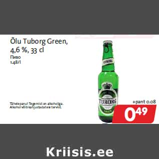 Kaup õlu tuborg green, oli müügil allahindlusega Hüper Rimi poes ajavahemikul 26.06.2013 kuni 02.07.2013 hinnaga 0.49 eurot.
