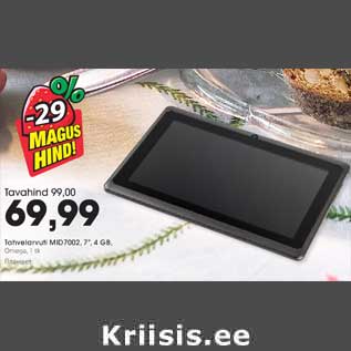 Kampaania periood: 08.08.2013 - 21.08.2013 Hind: 69.99€ TahvelarvutiMID 7002, 7",4GB, Omega, 1 tk