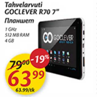 Kampaania periood: 03.09.2013 - 09.09.2013 Hind: 63.99€ Tahvelarvuti GOCLEVER R70 7"