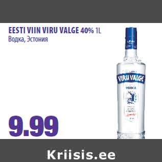 Kampaania periood: 02.10.2013 - 14.10.2013 Hind: 9.99€ EESTI VIIN VIRU VALGE 40% 1LKriisis.ee ei vastuta kommentaaride sisu eest. Autori arvamus võib kriisis.ee arvamusest erineda. Võimaluse korral jälgides kommentaare, kriisis.ee jätab endale õiguse kustutada neid põhjusi seletamata. Kui Teie olete sobimatu kommentaari märganud, palume meile sellest teatada.