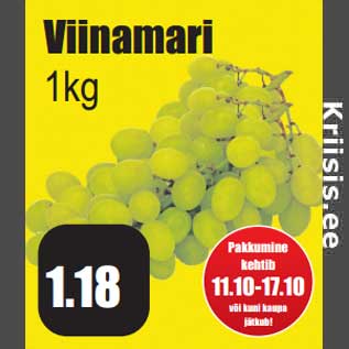 Kampaania periood: 11.10.2013 - 17.10.2013 Hind: 1.18€ Viinamari 1kg