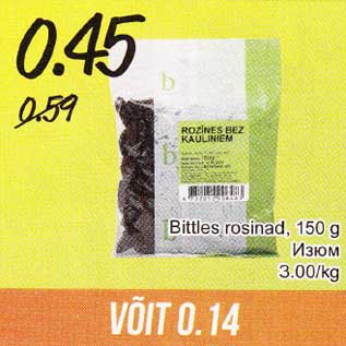 Kampaania periood: 28.10.2013 - 03.11.2013 Hind: 0.45€ Bittles rosinad, 150 g
