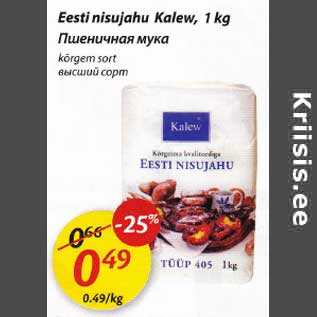 Kampaania periood: 31.10.2013 - 04.11.2013 Hind: 0.49€ Eesti nisujahu Kalew, 1 kg