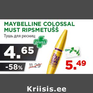 Kampaania periood: 27.11.2013 - 16.12.2013 Hind: 4.65€ MAYBELLINE COLOSSAL MUST RIPSMETUŠŠ