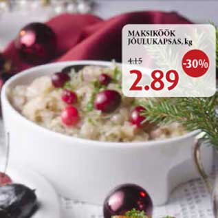 Kampaania periood: 18.12.2013 - 01.01.2014 Hind: 2.89€ MAKSIKÖÖK JÕULUKAPSAS, kg