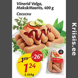 Kampaania periood: 17.12.2013 - 23.12.2013 Hind: 1.24€ Viinerid Valga, Maks&Moorits, 400 g