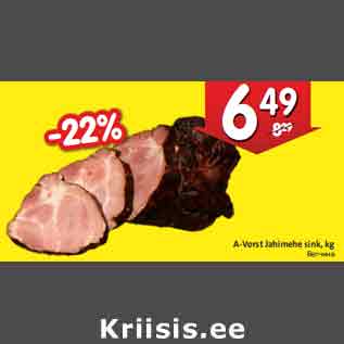 Kaup a-vorst jahimehe sink, kg oli müügil allahindlusega Hüper Rimi poes ajavahemikul 01.01.2014 kuni 14.01.2014 hinnaga 6.49 eurot.