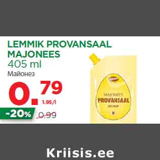 Kampaania periood: 03.01.2014 - 14.01.2014 Hind: 0.79€ LEMMIK PROVANSAAL MAJONEES 405 ml